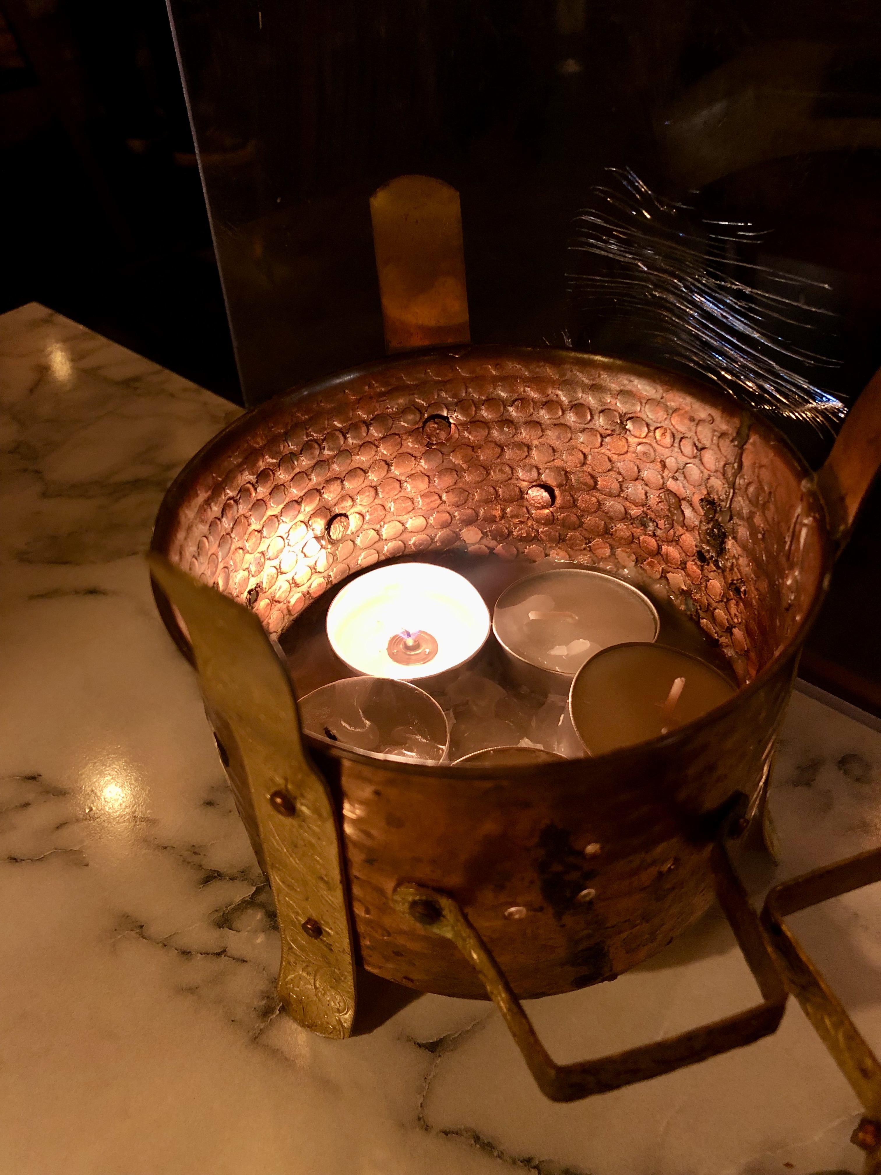 테이블 한켠엔 이렇게 초가 켜져있어요. 처음엔 인테리어용인 줄 알았는데 나중에 여기에 커리를 올려줍니다.