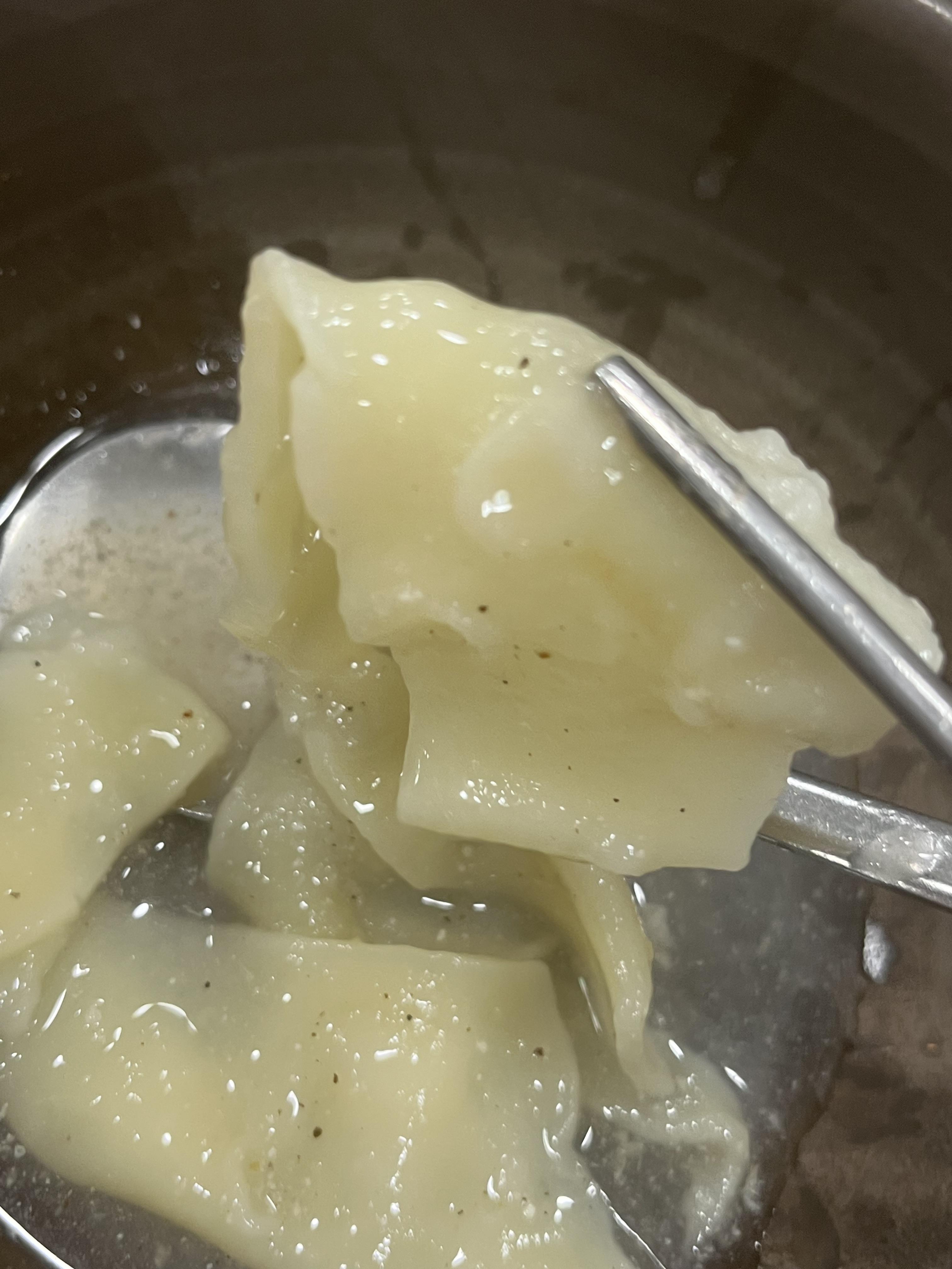 뒤적뒤적하니 면이 한가득 나옵니다. 이날 아쉽게도 면을 모두 먹은 사람은 없었어요. 그만큼 양이 많습니다. 그리고 특이하게 우뭇가사리면을 함께 넣어주시더라고요. 중간에 뚝뚝 끊기는 식감이 재밌었습니다.