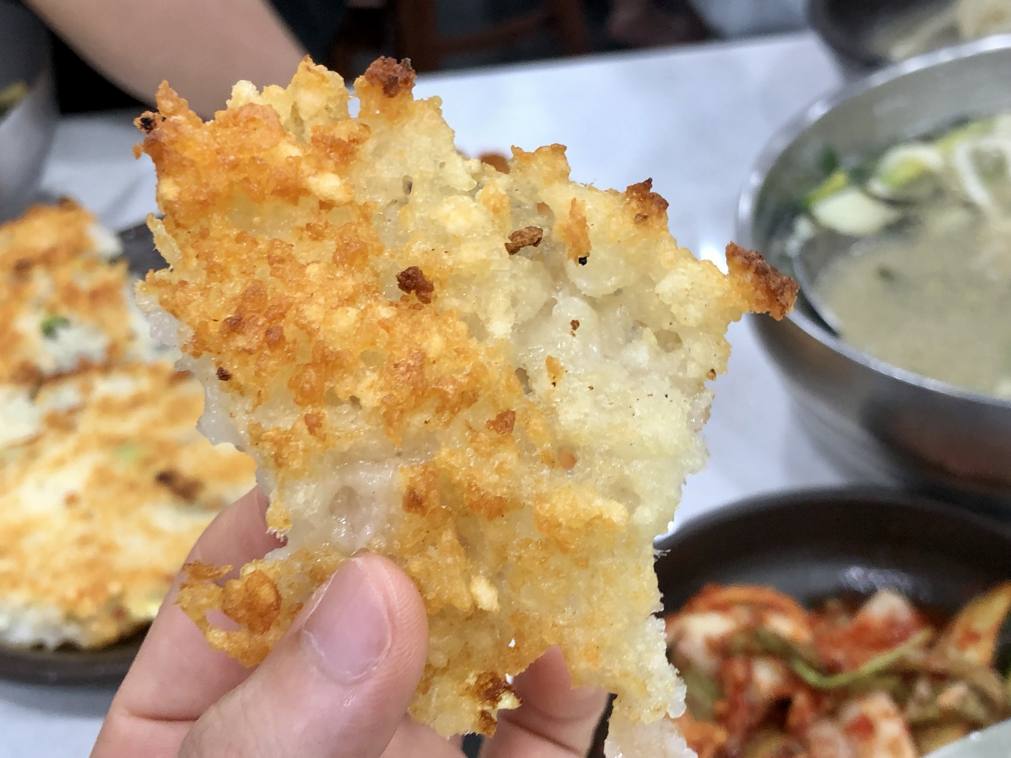 제가 만약 다시 저날로 돌아간다면 콩국수 하나를 뺄 거에요. 이유는 사진을 보시면 압니다. 국수에 감자전을 왜 주문하나 싶겠지만, 이 식당은 국수도 국수지만 감자전이 맛있기로 유명하거든요.