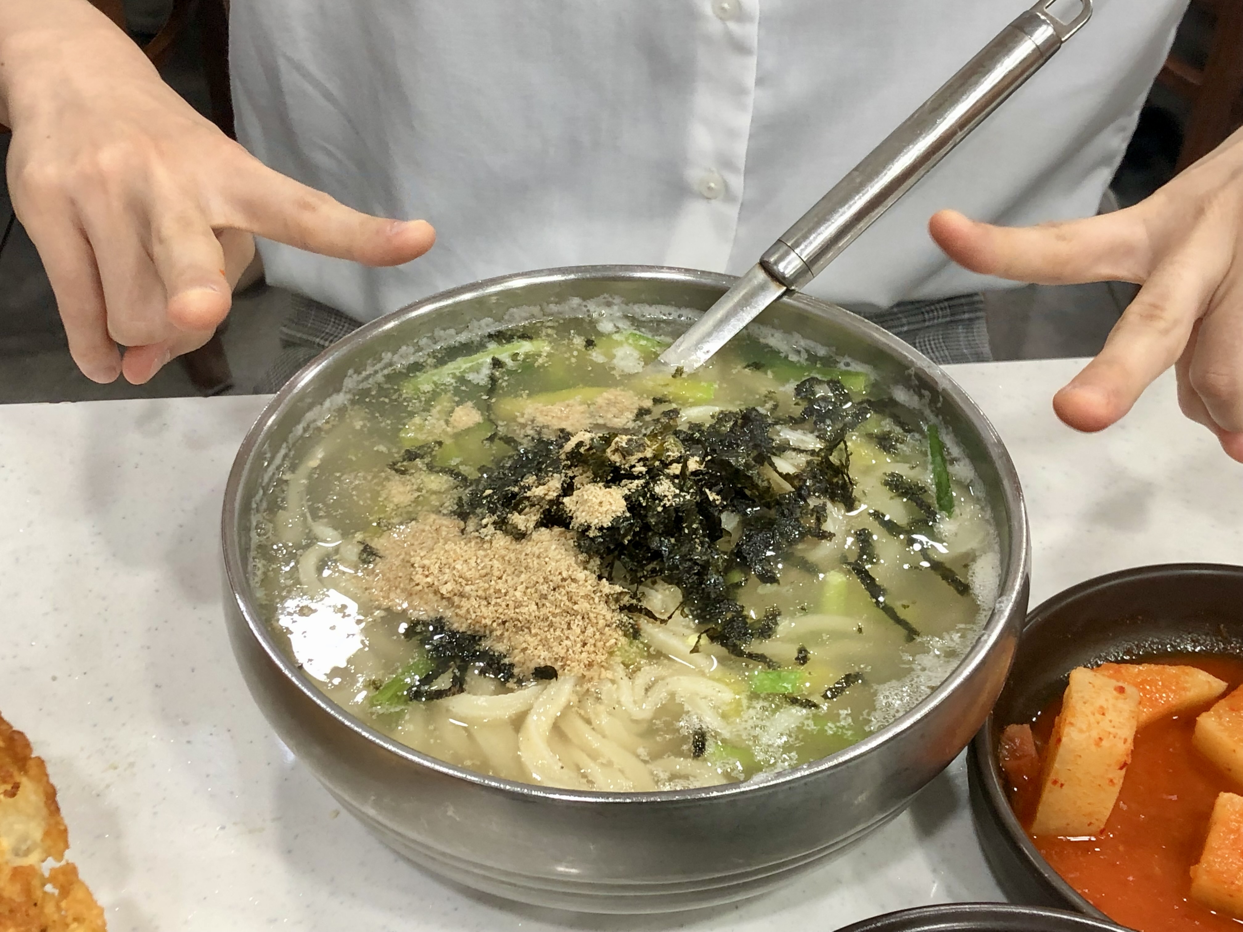 여름이 아니었다면 아마 콩국수 대신 해물 칼국수를 주문했을 것 같아요. 지인이 먹은 칼국수였는데 면발도 쫄깃하고 국물도 시원했습니다. 다만 같이 주문한 콩국수와 열무국수에 비하면 국물이 밋밋하고 따뜻해서 다른 계절에 도전해보려 해요.