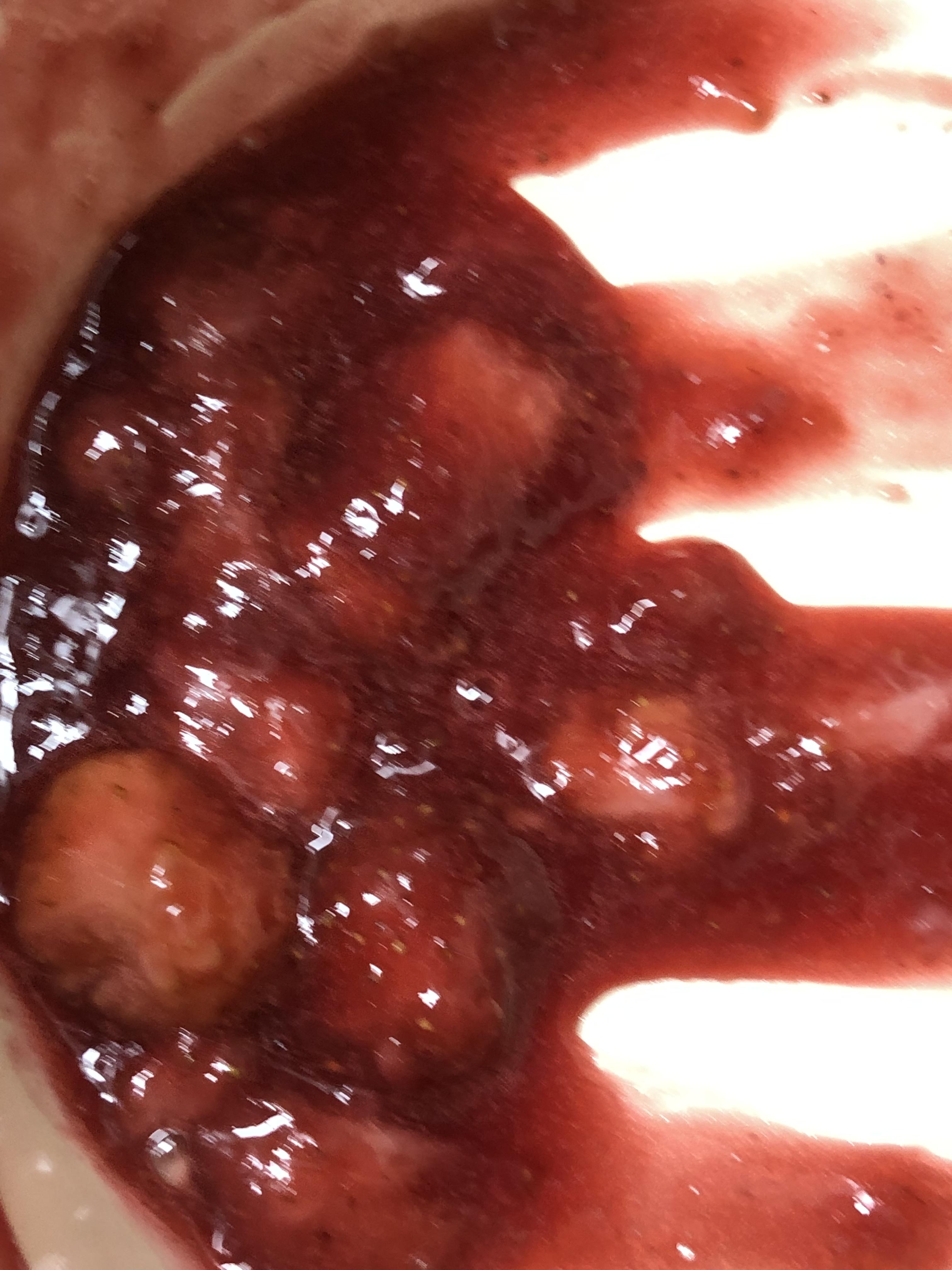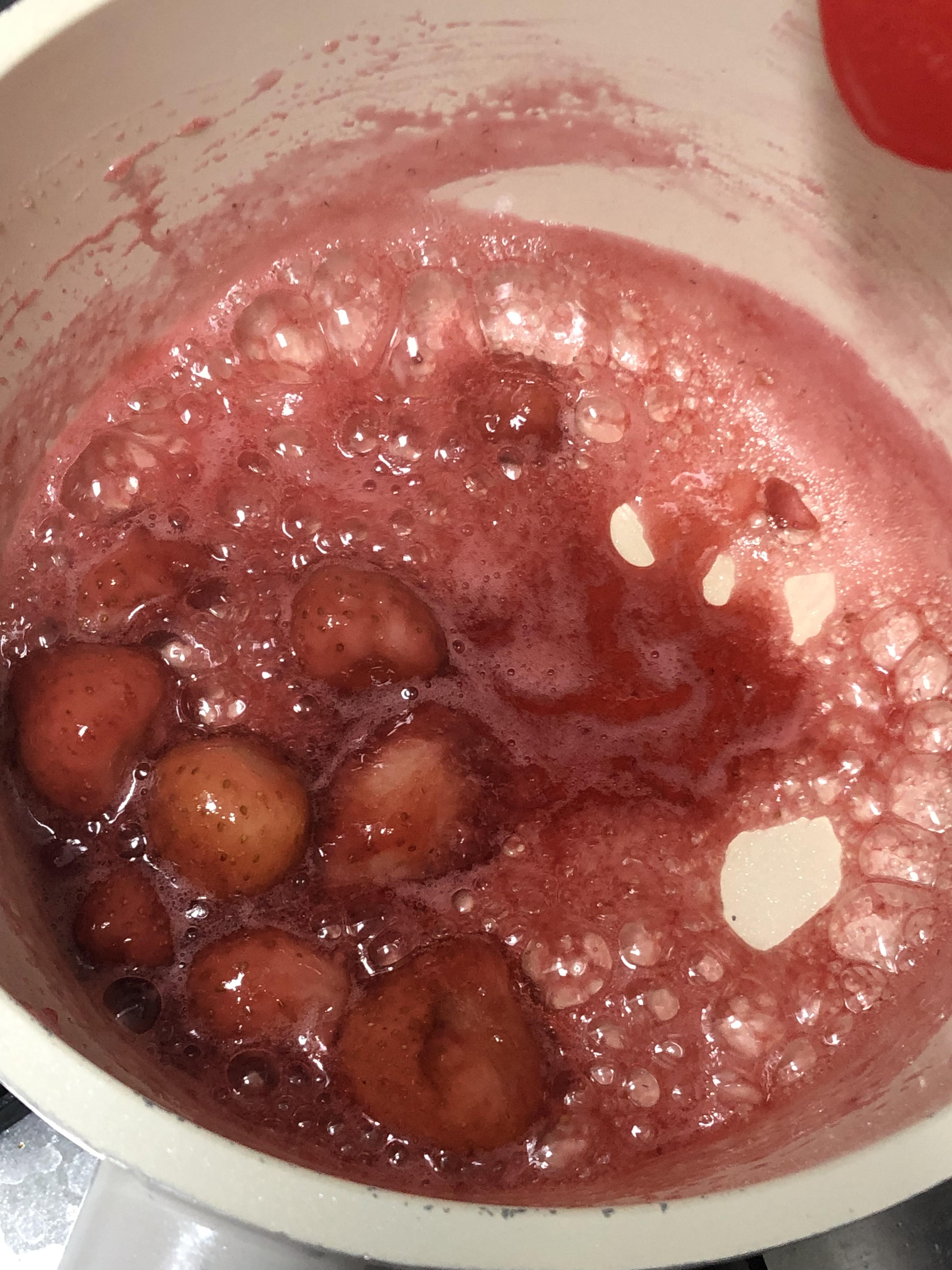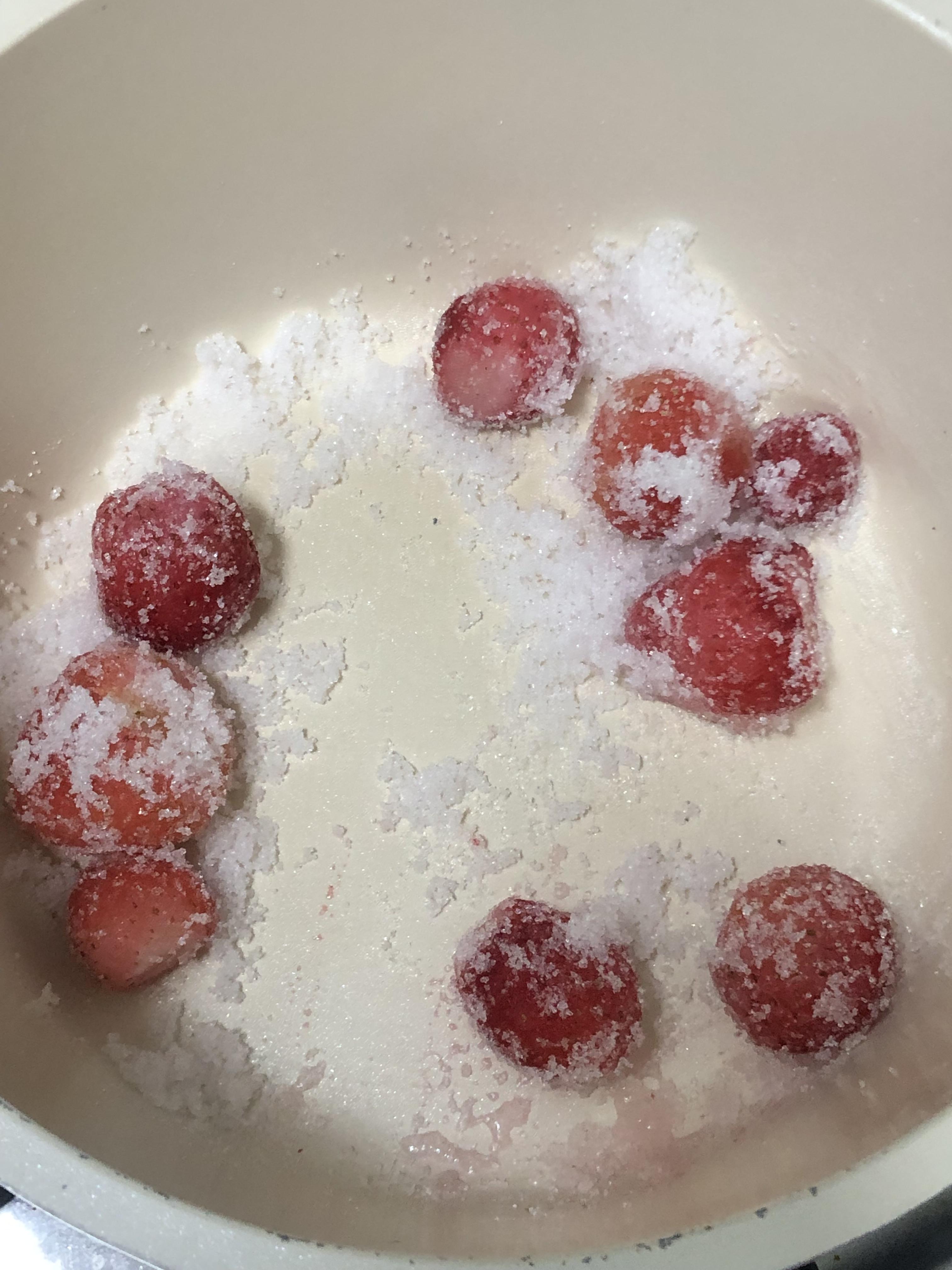 냉동딸기 50g, 설탕 25g, 레몬즙 3g