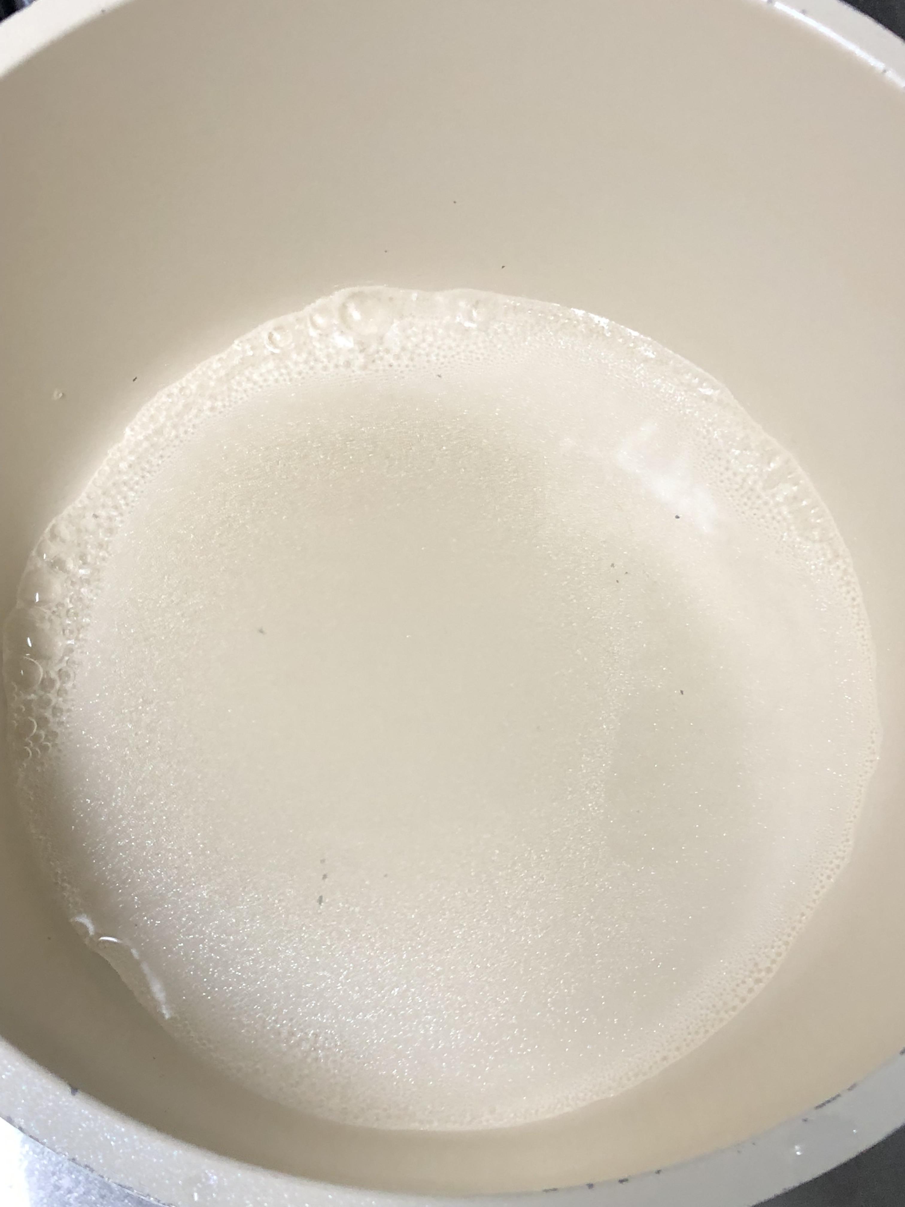 냄비에 물을 먼저 붓고 설탕을 넣습니다. 냄비가 끓으면 바로 불을 끄고 차갑게 식힙니다. 전자렌지에 물을 뜨겁게 데운 후 설탕을 넣어도 괜찮습니다.
