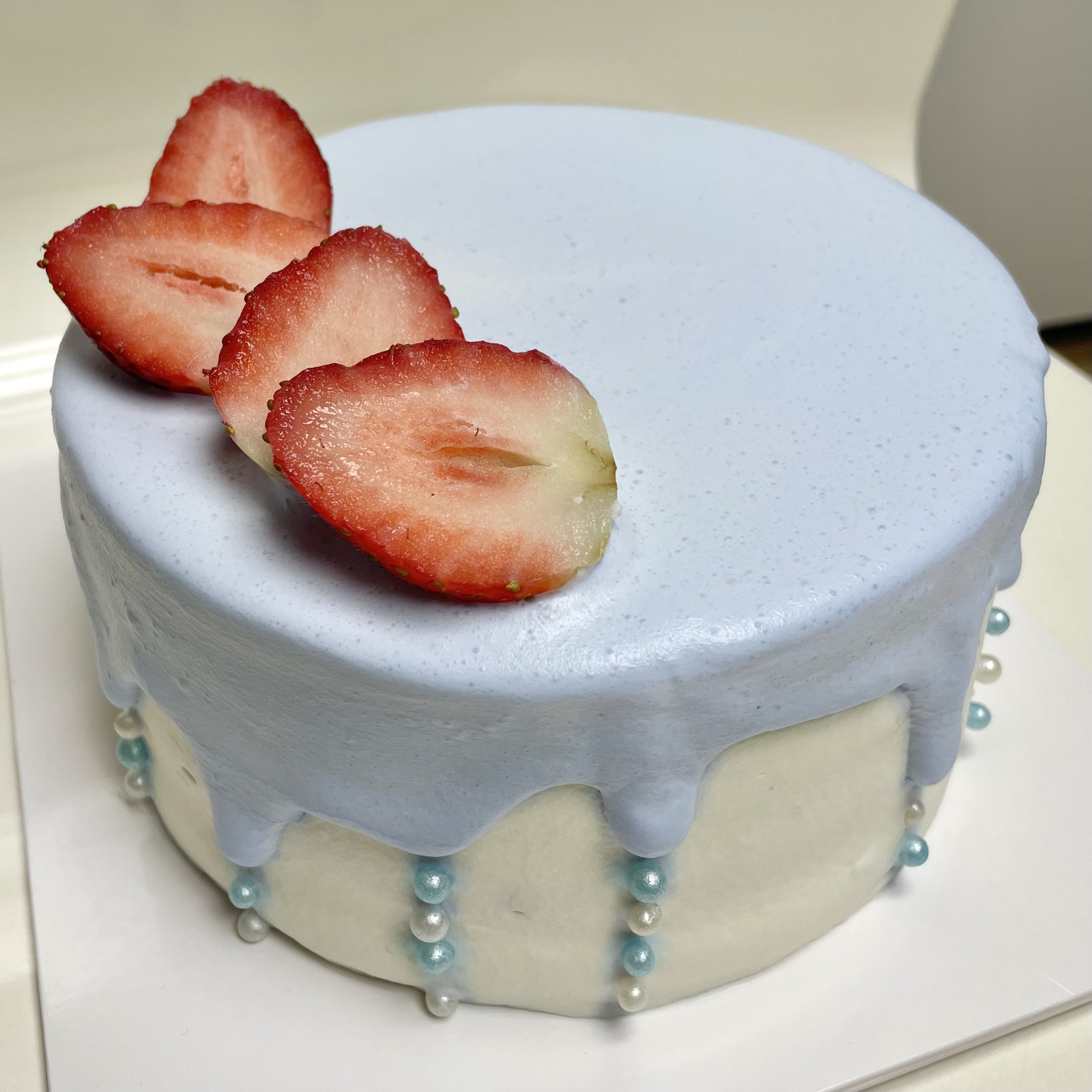 생크림을 70% 정도로 휘핑한 뒤 윗면에 붓고 조금씩 옆으로 흘려내려주면 돼요. 생각보다 옆으로 많이 흘려보낸 듯 해요.