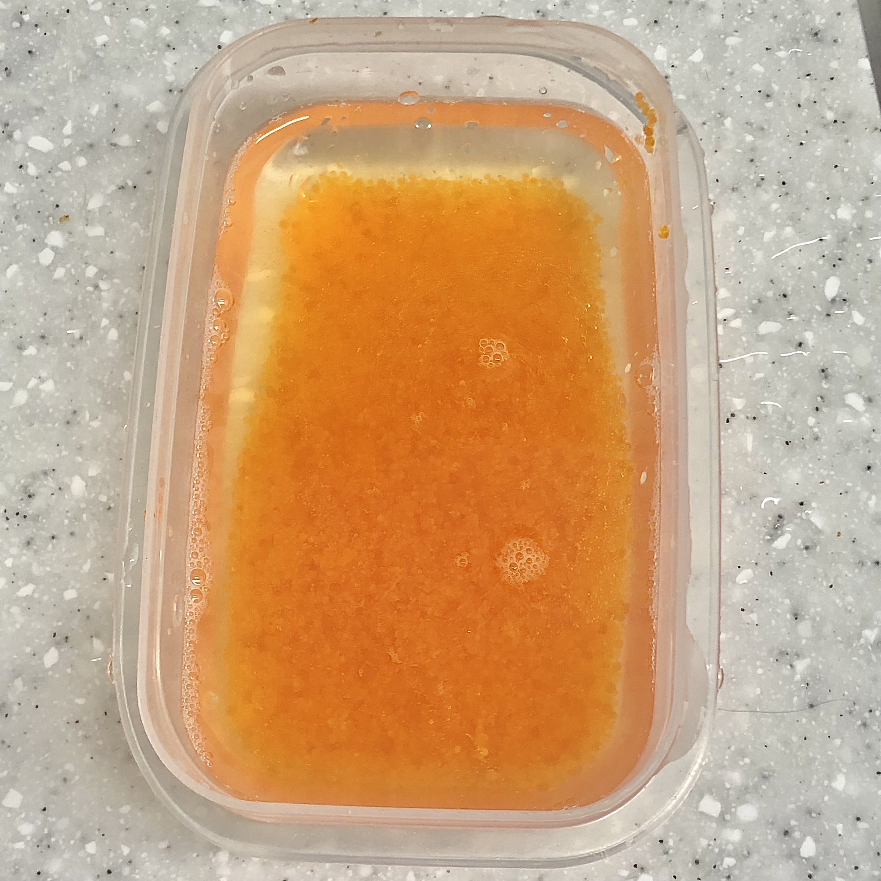 가장 먼저 날치알을 해동하고 물에 잠시 담궜다가 건져냅니다. 비린내가 너무 나는 날치알은 식초나 레몬즙을 물에 같이 넣은 뒤, 마지막에 물로 한 번 헹궈줍니다.